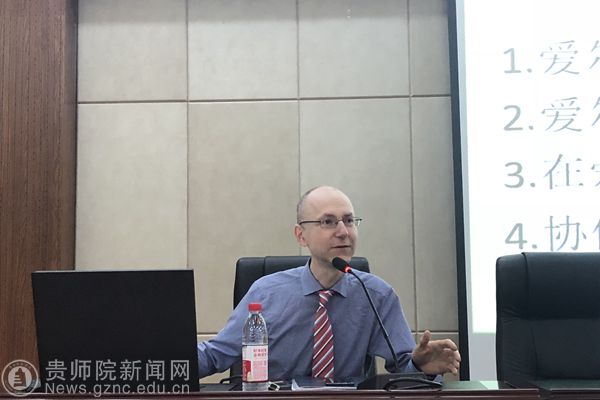 陶秀筑在讲座开始前介绍了Cathal De Paor博士的简要情况并和在座师生一起向Cathal De Paor博士来校讲座表示热烈欢迎。随后,Cathal De Paor博士从爱尔兰的历史渊源及地理位置、爱尔兰教育体系、爱尔兰的师范教育和教师团队研讨的重要性等四个方面深入浅出地对爱尔兰教育体制进行了讲解,让在座师生对爱尔兰教育有了初步的认识,师生们都表示受益匪浅。