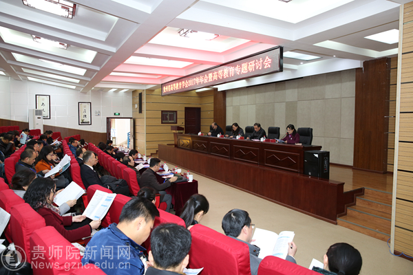 本网讯 12月28日,以“立德树人——高校互联网+下的思想政治教育”为主题的贵州省高等教育学会2017年年会暨高等教育专题研讨会在我校举行。来自西南大学、瑞典乌普萨拉大学、北京师范大学出版社的知名高等教育发展研究专家、学者以及省内高校思政教育工作者聚焦一堂,研讨贵州省高等教育发展的前沿课题,聚焦新形势下贵州高等教育的使命与责任,特别对贵州高等教育的现状与出路进行了研讨。副校长郭文教授主持开幕式。