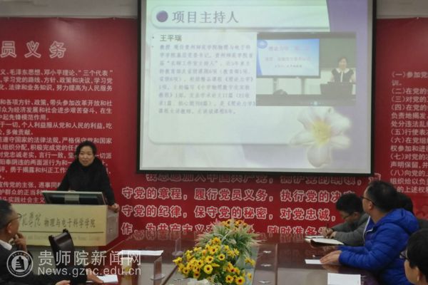 本网讯 12月6日下午,在物电学院会议室召开贵州省本科高校一流课程建设项目“理论物理”开题报告会。会议邀请了贵州大学隆正文教授、贵州师范大学宋晓书教授、伟德国际1949官网令狐荣锋教授和教务处熊世桓教授作为专家组成员,参会的还有教学质量管理科科谭义群老师,项目组成员陈德良、刘高福、李振宇、闻水国、吴永刚等。会议由项目负责人王平瑞教授主持。