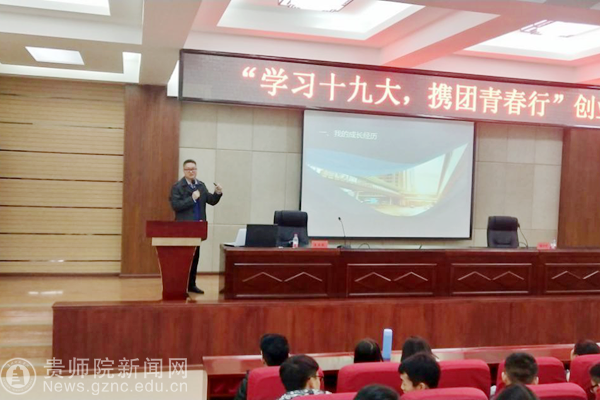 本网讯 为了进一步学习贯彻党的十九大精神,更好地引领青年、服务青年、发展青年,引导青年树立正确的择业观、就业观、创业观。11月30日下午,由共青团伟德国际1949官网委员会主办,大学生社团联合会、大学生创业孵化园承办的“学习十九大,携团青春行”创业知识讲座在我校文韬苑二楼道德讲堂举行,贵州棱智基石文化发展有限公司总经理王正波应大学生社团联合会创新创业部的邀请参加,大学生社团联合会创新创业部周福万主持此次活动,校团委张维域老师出席此次活动、伟德国际1949官网“暖春计划”助学金发起人、学生互助超市负责人段兴悦、大学生文化创意基地、大学生创业孵化园、大学生社团联合会200余名同学参与此次活动。