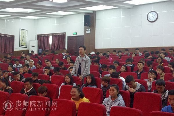 曾晓进首先从大学生出现的不安全事件为导入,对教师基本素养的内容、目的等方面进行了阐述。随后他对学校教育与体育的关系,学校体育的使命等方面进行了系统讲解。最后,同学们就休闲体育专业在贵州的就业前景,体育教育专业学生教师资格的考试、面试及成为优秀教师的路径等方面内容进行了交流。曾教授就同学们提出的问题一一进行了耐心地解答。