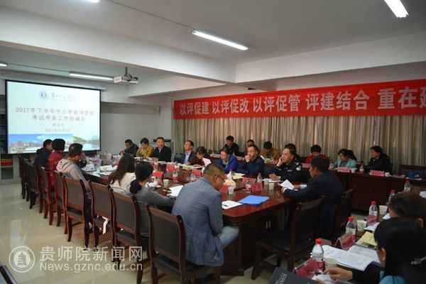 本网讯 为做好2017年11月4日中小学教师资格考试工作,11月1日上午,我校在文韬苑教务处会议室召开考务工作协调会。副校长郭文出席会议并讲话,会议由教务处处长熊世桓主持。参加会议的有贵阳市乌当新天学校、贵阳市乌当二中、高新派出所相关负责人,以及我校党政办、团委、宣传部、学工部、保卫处、后勤处、纪检监察办公室、教育信息网络中心、航天物管等部门负责人和各学院基层党委书记。