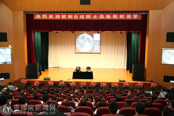 本网讯 为了营造浓厚的科学研究氛围,拓展全校师生的学术视野,提升我校人才培养的质量。10月29日下午,我国著名天体化学与地球化学学家、中国科学院院士、发展中国家科学院院士、国际宇航科学院院士、中国探月总工程首席科学家,被誉为“嫦娥之父”的欧阳自远院士应化学与生命科学学院邀请,在逸夫楼演播厅进行了 “中国的探月梦”专题报告。校长郁钟铭、副校长令狐荣锋出席,科研处处长金凤、化学与生命科学学院全体院领导、物理与电子科学学院、地理与旅游学院领导及500余名师生聆听了此次报告会,报告会由郁钟铭校长主持。