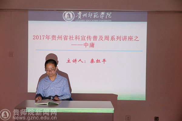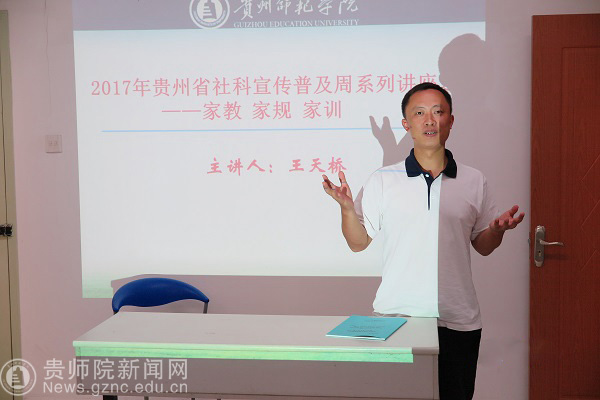 本网讯 9月19到25日,我校开展了2017年贵州省社科宣传普及周系列讲座活动,马列主义教学部王天桥、秦红平、张玉胜、王维江、庞雯予、石磊等分别主讲了“家教 家规 家训”、“中庸”、“大学生的法律思维”、“女性与社会性别”、“王阳明致良知”等六个专题。该次活动由科研处、马列主义教学部联合举办,在《思想道德修养与法律基础》课程和思想政治理论课课程群教学班级进行。