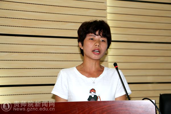 我校2016届校友、来自黔东南州榕江县滚仲小学的教师吴昌洁代表参训学员作表态发言。