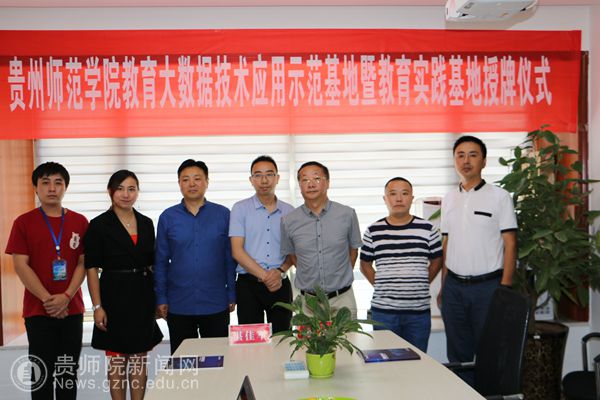 本网讯 9月19日,我校与贵州忠义柒彩科技开发有限公司共建立教育大数据技术应用示范基地及教育实践基地授牌仪式在该公司会议室举行。贵州忠义柒彩科技开发有限公司董事长湛佳军、副董事长朱昭华、我校数计学院院长左羽教授、副院长熊伟程副教授出席授牌仪式。贵州州忠义柒彩科技开发有限公司主要负责人、数计学院实践教学秘书凌巍等参加授牌仪式。
