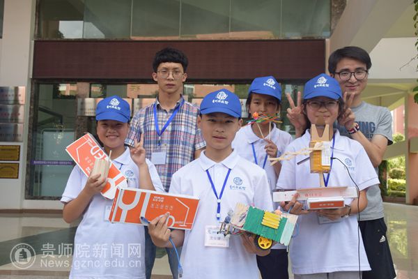 来自贵州省天柱和石阡的小朋友参加了此次活动。在4天的活动中,在我校创客教育师生团队的带领下,小朋友们尽情的发挥着自己的想象力,将自己平时以为的废物都利用起来,变废为宝,开启了自己的创客之路。
