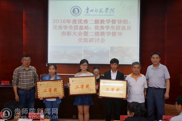 首先,邓琴介绍2016年度优秀二级教学督导组、优秀学生信息站及优秀学生信息员的评选情况。随后,优秀二级教学督导组代表文学院郑颖老师发言;优秀学生信息员代表教育科学学院席云凤同学发言。郭文、校级教学督导为2016年度优秀二级教学督导组、优秀学生信息站、优秀学生信息员进行颁奖。会上,校级教学督导、二级教学督导分别就督导工作开展情况进行了探讨和交流。