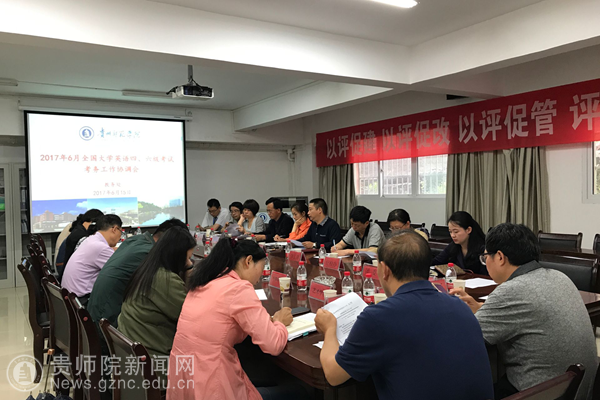 会议传达了贵州省招生考试院《关于做好2017年6月全国大学英语四、六级考试及高校英语应用能力考试考试安全和考务管理工作的通知》(黔招考社〔2017〕12号)的相关精神。刘宪帮就我校本次考试的基本情况作了介绍。他说,这次英语四、六级考试一共有4835人参加,其中参加四级考试有4050人,分别在文韬苑、知行苑、逸夫楼135个考场进行,参加六级考试785人,在文韬苑27个考场进行。此次考试工作任务较重,希望大家在以下几个方面做好工作:一是相关部门负责同志要落实主体责任。各类工作人员要明晰个人任务与职责,扎实做好各项考试保障工作,确保试卷安全、考试安全。二是要加强考务培训,提高考务管理水平。各学院考前认真组织监考教师参加相关培训。三是要科学地制定应急预案,确保考试顺利进行。四是要进一步加强考风考纪教育。要对考生进行考风考纪诚信教育,采取有效措施杜绝舞弊现象的发生,为考生营造一个公平、公正的良好考试环境。最后,各职能部门、二级学院领导和教务处签署了考试工作责任书。