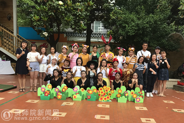 本网讯 6月9日,受贵阳市实验二幼的邀请,校团委、教科院联合组织我校大拇指儿童剧团在幼儿园进行“彩虹森林奇遇记”儿童剧演出。校团委路尚明老师、教育科学学院团委书记申苒老师带队参加。
