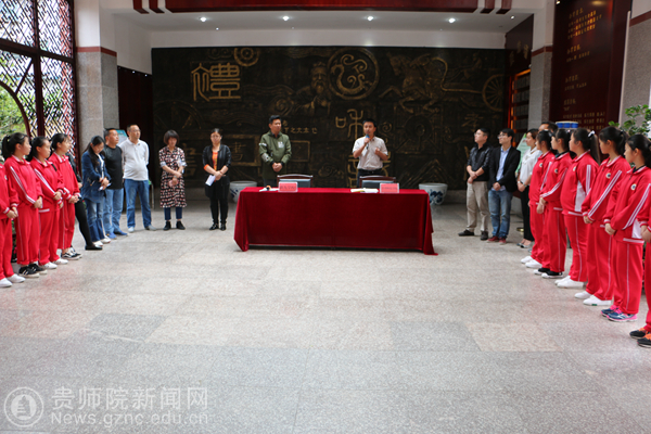 本网讯 5月26日,我校与乌当区新九学校签署共建教育实践基地协议并授牌,签约授牌仪式在新九学校举行。新九学校党支部书记胡鸿,副校长潘明、韩继祥、周娴,工会主席罗晓英,党办主任穆天学,行政办主任李弥,总务主任白明勇及师生代表,我校数计学院副院长熊伟程、互联网+大学生创新创业中心主任崔忠伟、数计学院郭龙老师、王桥老师参加签约授牌仪式,仪式由新九学校副校长潘明主持。