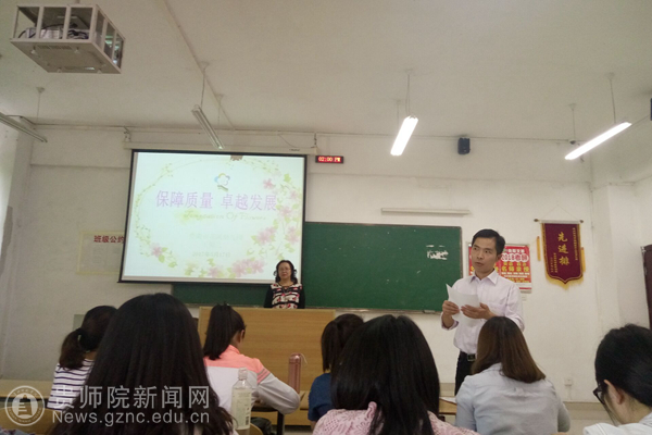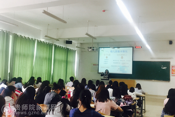 本网讯 5月17日下午,教育科学学院邀请了贵阳市花溪幼儿园园长王菊兰,在我校逸夫楼402教室为2014级、2015级学前教育专业学生做了《幼儿园管理经验分享》专题讲座。讲座由教育科学学院党委副书记袁川教授主持。