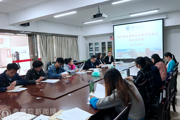 本网讯 我校2017届普通高等教育毕业生教师资格认定工作于3月底正式启动。3月28日下午,在文韬苑明理楼教务处会议室召开了应届毕业生教师资格认定工作培训会,各学院专门选派一名老师全程负责本次资格认定工作并参加会议。会议由教务处副处长刘宪帮主持。