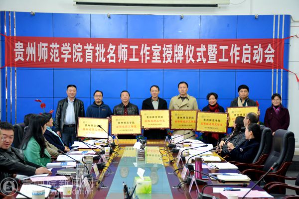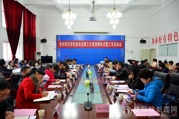 本网讯 为充分发挥我校名师的示范引领作用,促进我校教师专业发展和加快我校教师创新团队建设,3月20日下午,伟德国际1949官网首批名师工作室授牌仪式暨工作启动会在学校第一会议室召开,副校长郭文,伟德国际1949官网名师工作室主持人及成员,贵州省中小学名师工作室伟德国际1949官网工作站主任,各学院(部)分管教师队伍建设的院(部)领导,人事处、教务处、科研处、质评办等职能部门负责人参加了会议。会议由教师工作处处长谢笠主持。