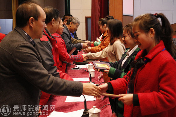 会议伊始,三名获奖的优秀选手分别进行了教学技能的现场展示,内容生动、形式新颖、教学方法多样,博得现场观众阵阵掌声;接着,贵州师范大学学前教育博士李旭对比赛情况进行了点评;随后,由教育科学学院学生带来的儿童剧《我选我自己》、苗族歌舞《干一杯》,充分展现了我校学前教育学子的风采,也给现场嘉宾留下了深刻的“贵州印象”;紧接着,中国教育技术协会微格教学专委会秘书长杨华教授进行总结讲话,他充分肯定了此次比赛的成绩,对参赛学员的完美表现、领队教师的辛勤指导、大赛承办方工作人员的热情付出表示由衷的感谢,并对学前教育的改革和发展提出了新的希望;最后,与会领导分别宣读了在活动设计、教学技能中获奖的人员名单,并向获得特等奖的选手颁发了证书。