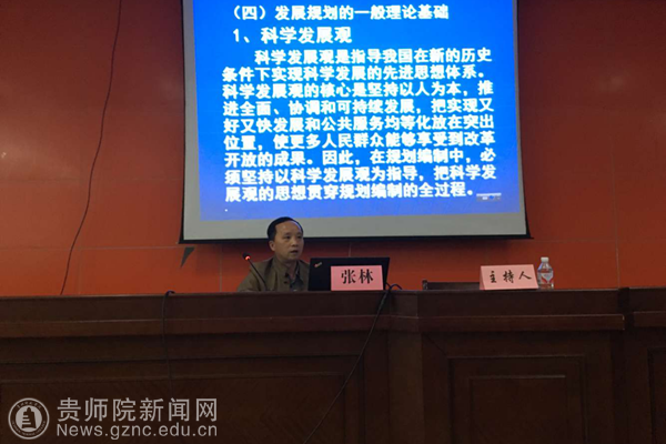 讲座伊始,胡江华对聆听讲座的同学们介绍了主讲人张林的基本信息,并介绍了经政学院相关专业的基本情况。讲座中张林向在座师生介绍了地方经济规划的作用、相关体系、规划的编制及实施。随后,张林向同学们分析了乌当区地方经济并解读了中国社会发展第十三五个规划纲要。张林着重强调乌当区的经济发展规划要走崇尚创新、注重协调、倡导绿色发展的道路。最后,胡江华为本次讲座作出总结,希望同学们通过本次讲座对区域经济规划有更切实的体会,深入实践、学以致用。