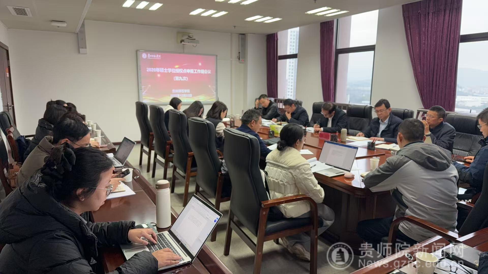 本网讯 12月22日上午,我校2026年硕士学位授权点申报工作会(第九次会议)在信息楼907顺利召开。校党委书记战勇,校党委常委、副校长潘运出席会议并讲话,校申报工作组全体成员参会,会议由研究生院负责人钱长江主持。