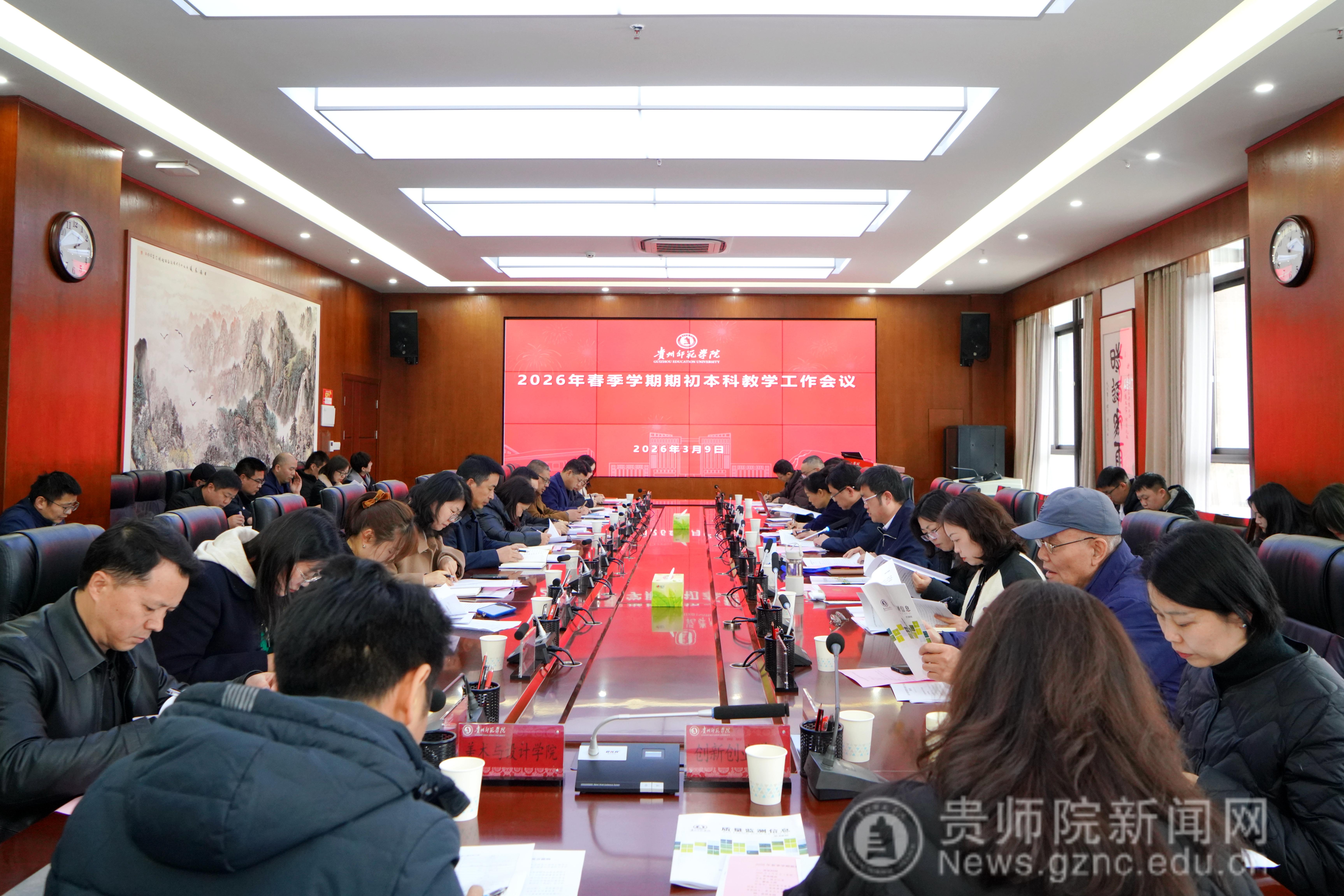 本网讯3月9日,我校2026年春季学期期初本科教学工作会议在信息楼二楼会议室召开。校级教学督导,教务处、学工部、招就处、质评办、网络中心、心理健康中心主要负责人,各学院院长及分管教学副院长,教务处全体人员参加会议。会议由教务处处长杜宏博主持。校党委常委、副校长潘运出席会议并讲话。