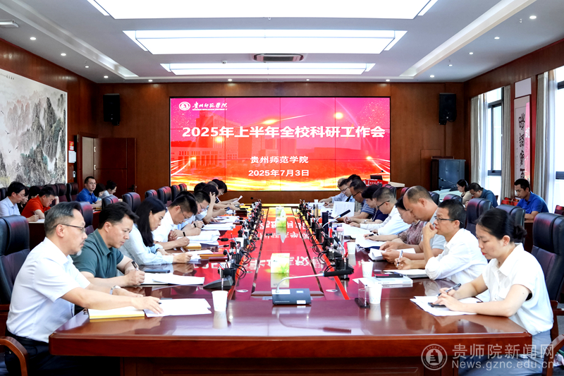 本网讯 7月3日,2025年上半年全校科研工作会在信息楼二楼会议室召开。校长王蜀黔、副校长罗光杰、科研处全体人员、各科研机构负责人、各学院院长或分管科研工作的副院长、各二级单位科研秘书, 以及教师工作部、计财处、人事处、国资处、发规处、研究生院、大学科技园主要负责人参加了会议。会议由副校长罗光杰主持。