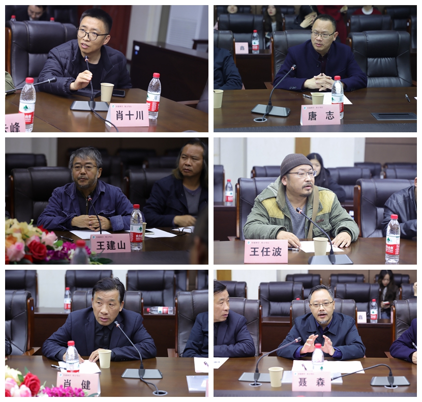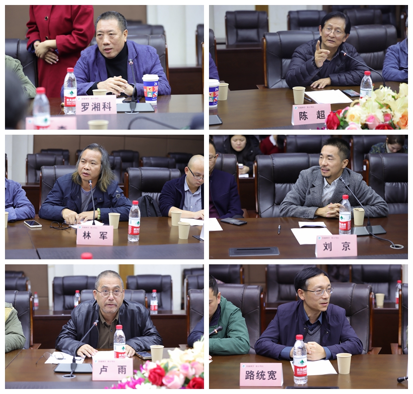 在开幕式后,还进行了主题为“中国版画发展方向”的学术研讨会,出席的嘉宾有文牧江、陈超、王建山、卢雨、罗湘科、唐志、聂森、林军、刘京、路统宽、普馨伟、肖健、王任波、肖十川、邓林、邓鹭、丁凯、高云峰等,研讨会由文牧江教授主持。专家们聚焦于贵州版画艺术的创作灵感、技术手法、文化符号,共同探讨了百年来贵州版画在民族文化、传统文化传承和创新融合方面的积极努力,认为贵州版画鲜明的体现了中华文明连续性、创新性、统一性、包容性与和平性等突出特性,并以本项目对贵州百年版画的整理为例,探索了地域性版画史梳理的方法,提出新时代版画应以时代图景为内容,尝试创新艺术形式,结合时代主题,延续版画革命基因,承担版画艺术所应承担的历史责任。