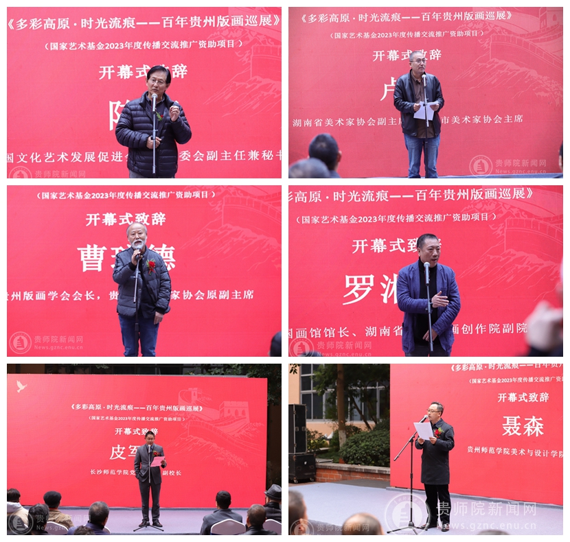 本网讯 2023年11月18日,国家艺术基金2023年度传播交流推广资助项目《多彩高原·时光流痕——百年贵州版画巡展》长沙站在长沙师范学院美术馆开幕。