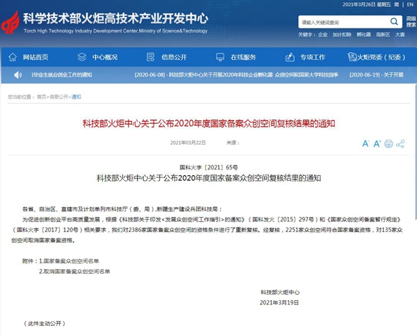 本网讯 为促进创新创业平台高质量发展,科技部根据《科技部关于印发<发展众创空间工作指引>的通知》(国科发火〔2015〕297号)和《国家众创空间备案暂行规定》(国科火字〔2017〕120号),对全国2386家国家备案众创空间的资格条件进行了全面复核。经复核,取消了135家众创空间备案资格,我校思源众创空间成功通过复核。