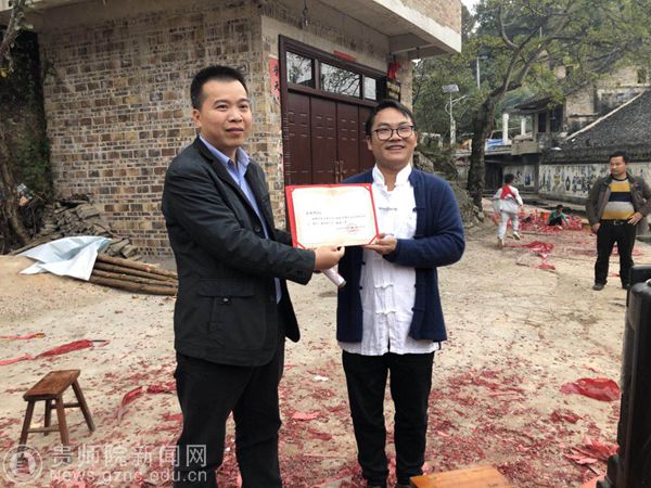 随后,我校民族教育研究院杨定玉教授、陈志永教授、廖斌、凉伞村村民龙明开共同为“中国乡土社会研究中心(贵州)凉伞研究基地”揭牌,杨定玉教授还为施秉县委党校原副校长宋永泉以及村落精英龙明开颁发“中国乡土社会研究中心(贵州)兼职研究员聘书”。