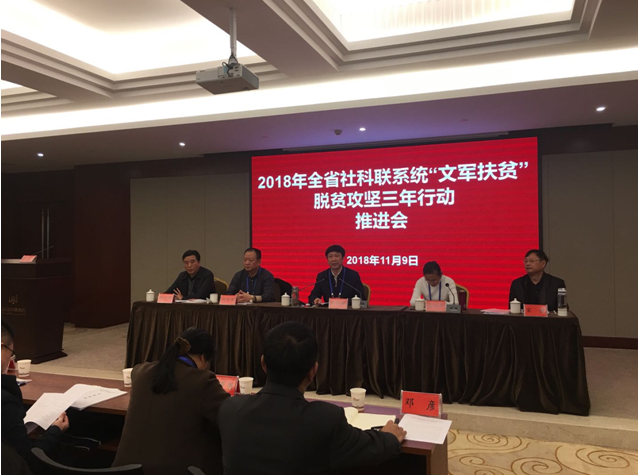 包御琨指出,全省社科扶贫已初步呈现省社科联率先垂范走在前列、各协会学会积极踊跃崭露头角、市州及高校社科联有声有色取得成效等特点;要求在新形势新任务新要求下,要充分认识社科扶贫的重要地位,把脱贫攻坚作为重大政治任务扛在肩上抓在手上。要围绕脱贫攻坚三年行动计划推进社科联各项业务工作的开展。