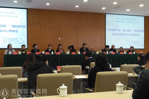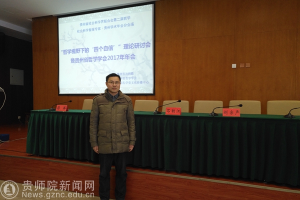 本网讯 11月25日,由贵州省社科联主办、贵州省哲学学会承办、贵阳孔学堂文化传播中心协办的“哲学视野下的‘四个自信’理论研讨会暨贵州省哲学学会2017年学术年会”在孔学堂二期研修院区会议中心第一会议室举行。参会专家约80余人,分别来自省社科联、省社科院、省委党校、省委讲师团、贵大、贵师大等省内27家单位。我校经济与政治学院副院长陈祖召博士应邀参会。