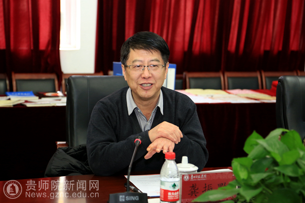 座谈会上,郁钟铭向专家组介绍了我校的基本情况,并着重介绍了我校哲学社会科学创新团队——贵州省乡村旅游资源开发与旅游扶贫研究创新团队,取得的主要成果。他指出,哲学省会科学创新团队是高校汇聚社科研究资源,开展哲学社会科学研究的重要力量。做好哲学社会科学创新团体建设研究工作,对于提升承当重大课题研究的能力与水平,促进高水平研究成果产出,服务党政机关、企事业党委决策等具有重要意义。他希望与会各位领导和专家对我校创新团队的建设工作提出宝贵意见和建议,推动我校哲学社会科学研究及新型智库建设工作迈上新台阶。