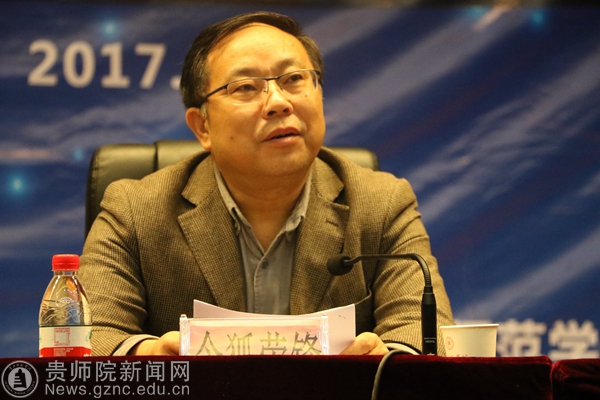 令狐荣锋为会议致辞,代表学校对张景中院士及来宾的到来表示诚挚的感谢,他强调设立院士工作站的目的就是要集聚创新资源和顶尖人才,借助院士及其科研团队的高智力为贵州教育培训高端人才,引领本地团队攻克教育大数据应用核心的关键技术,提高贵州教育水平,助力贵州经济社会的发展。他表示我校与张景中院士合作共建贵州省教育大数据技术与教育数学院士工作站,利用张景中院士的人工智能教育平台和教育数学,通过示范,开启大数据信息技术在我省教育中的深入应用,得出符合贵州情况的新的教育模式,用于大面积的提高数学教育的质量。他说:“院士工作站创立以来,为学校服务地方经济社会搭建了平台,为学校发展提供了智力的支持,为科技工作者开展才华提供了舞台,为贵州的基础教育注入了动力,今天活动的开展一定会深入推进贵州省教育大数据技术与教育数学院士工作站建设项目的各项任务的完成,一定会全面推进教育大数据技术与教育数学在贵州大地开花结果。”期间,令狐荣峰还简介了张景中院士对教育数学的成就与贡献,并简介了我校目前教学科研的情况。