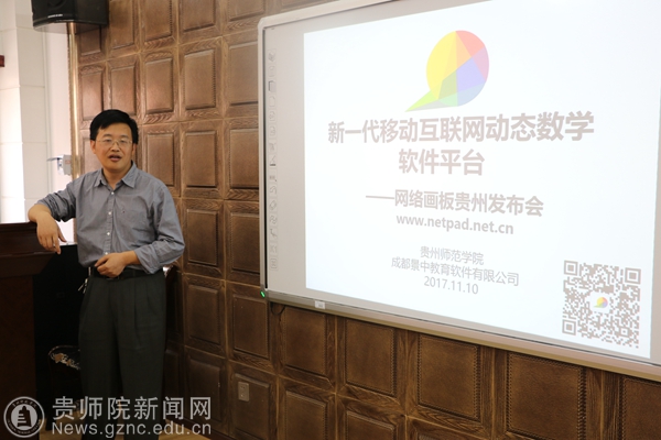 会议期间,我校与成都景中教育软件有限公司共同举办了“新一代移动互联网动态数学软件平台——网络画板贵州发布会”,成都景中教育软件有限公司负责人尧刚主持活动并介绍相关情况。