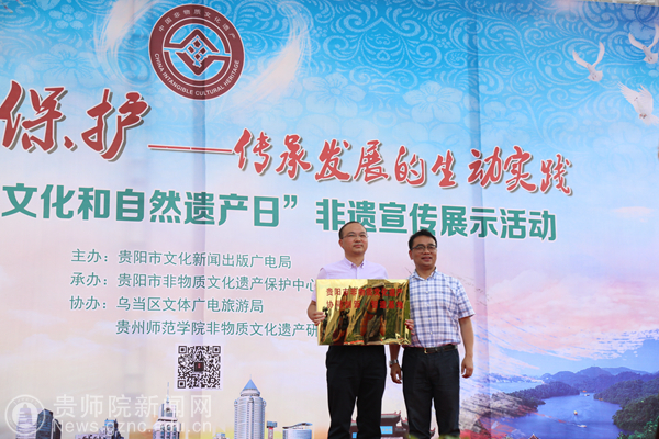 本网讯 6月8日上午,贵阳市文化新闻出版广电局在乌当区振华举行贵阳市首个“文化与自然遗产日”系列非遗宣传展示活动。我校科研处副处长余乐正、大学科技园董事长陈仁华、副总经理王明参加了此次活动。