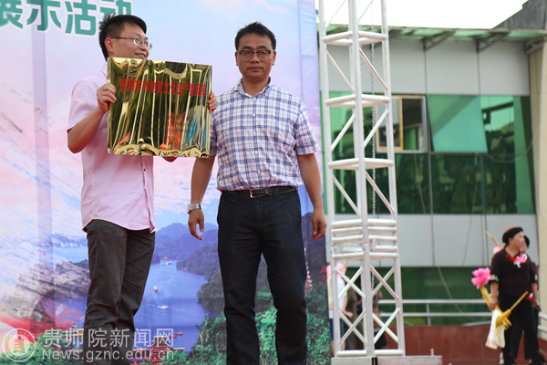 贵阳市文广新局王俊副局长向我校授予市非物质文化遗产数据库牌匾