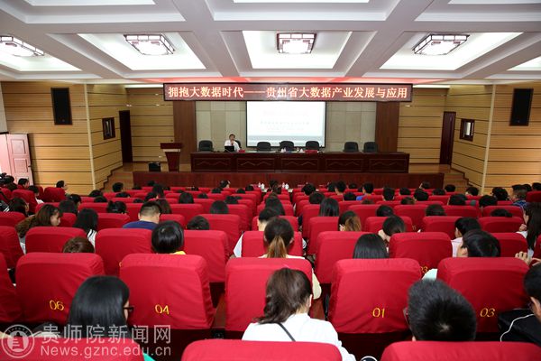 本网讯 5月19日下午,省政协副主席、省核心专家、贵州师范大学副校长谢晓尧应邀到我校作题为“拥抱大数据时代——贵州省大数据产业发展与应用”的专题报告。报告由校长李存雄主持。全体校领导,各部门、学院负责人及师生代表200余人聆听了此次报告。