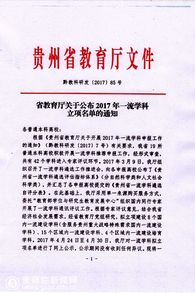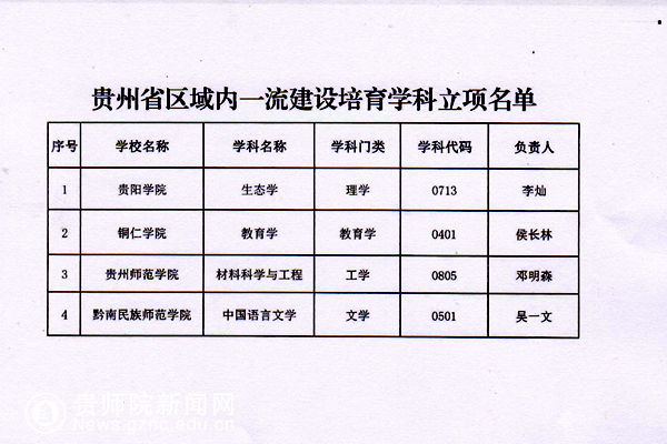 本网讯 根据省教育厅发布《关于公布2017年一流学科立项名单的通知》(黔教科研发﹝2017﹞85号),正式公布了贵州省一流学科立项结果,我校“材料科学与工程“”入选贵州省区域内一流建设培育学科。