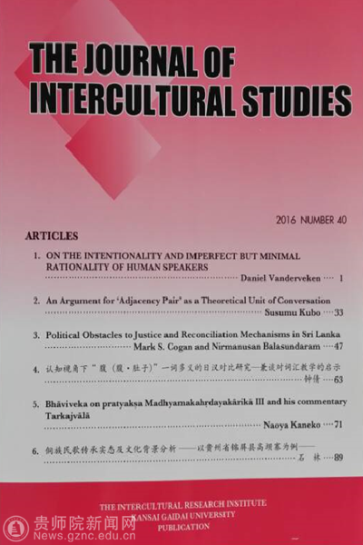 据悉,《The Journal of Intercultural Studies》是由日本关西外国语大学创办的高端学术期刊,是国际民族语言类期刊中最具有影响力的学术期刊之一,在国内外享有很高的声誉。
