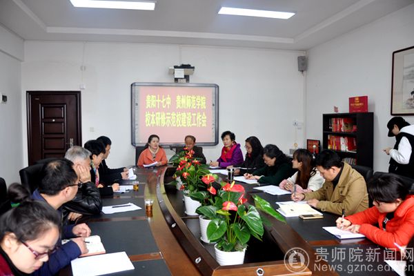 本网讯 3月20日下午,我校教育科学研究所组织相关学科专家团队赴贵阳第十七中学参加“校本研修示范校建设工作推进会”。伟德国际1949官网教育科学研究所所长王又新,语文、数学、化学三个学科的专家吴在东副教授、张俊忠博士、文君副教授,贵阳第十七中学党委书记、校长唐海定,副校长朱庆华,教科处主任刘曲宁,学科教研组长及部分骨干教师出席会议。