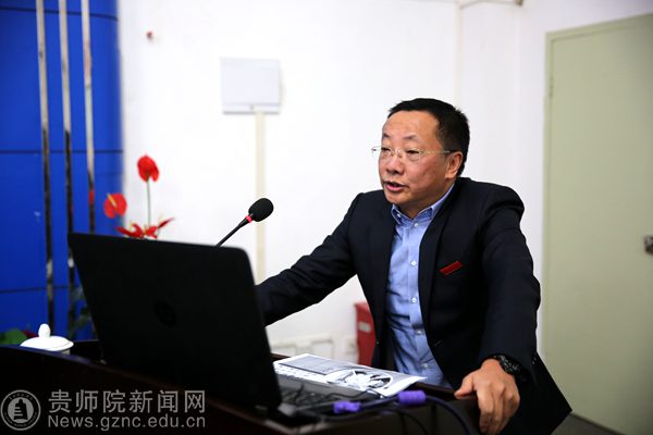 校长李存雄以PPT的形式从办学定位与特色、师资队伍与水平、人才培养与质量、科学研究与贡献、整体条件与支撑五个方面向专家组汇报了我校新增硕士学位授予立项建设单位规划情况。