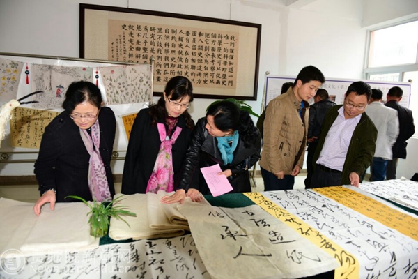 典礼最后各位领导与研培班学员一起参观了由本次研培班学员在培训期间创作的结业作品展。