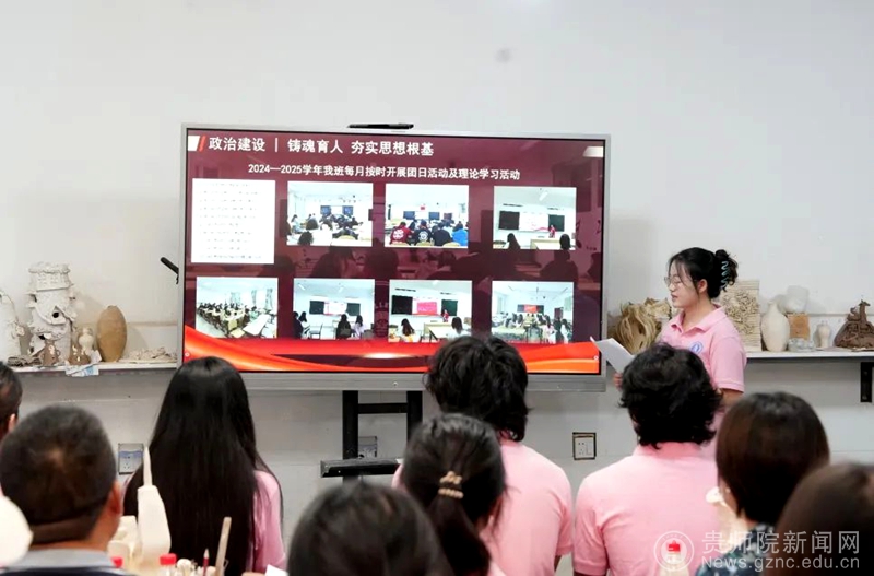 首先,团支书王美蓉详细汇报团支部基本情况和专业特色。她介绍,团支部始终秉持“陶塑绿色理念,凝聚艺心向党的信念”,积极探索艺术与公共服务的融合,通过课堂理论与课外实践相结合的方式,着力培养兼具审美素养与社会责任感的艺术人才。