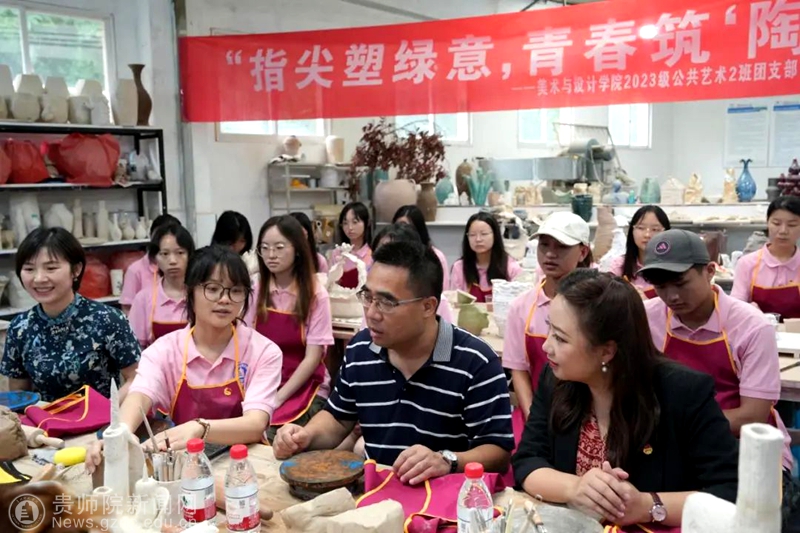 本网讯 2025年6月20日,伟德国际1949官网美术与设计学院2023级公共艺术2班团支部在陶艺工坊举办了一场别开生面的“倡导绿色发展——美丽中国青春行”主题团日活动。伟德国际1949官网党委副书记龙健,校团委书记周煜、美术与设计学院党委书记郝进欣、院长聂森、党委副书记邱琴、院团委副书记黄婧、2023级辅导员谢琦以及2023级公共艺术2班全体同学参与,共同为绿色发展贡献青春力量。