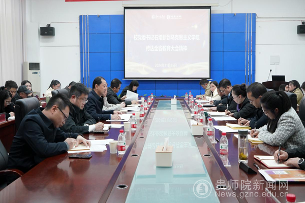 本网讯 为深入学习贯彻党的二十届三中全会、全国教育大会和贵州省委第十三届五次全会精神,在刚刚召开全省教育大会之后,校党委书记石培新率领相关职能部门负责同志,于11月25日下午,到马克思主义学院召开现场办公会,旨在进一步加强马克思主义学院内涵式建设。会议由校党委委员、副校长,马克思主义学院党委书记任洁主持,党委教师工作部、人事处、教务处、科研处、研究生院有关负责同志,马克思主义学院全体教职工,思想政治教育专业学生代表参加。
