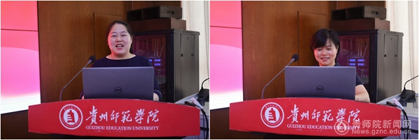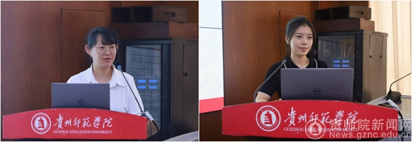 学院基层工会代表廖丽君、机关基层代表邹宝萍交流发言