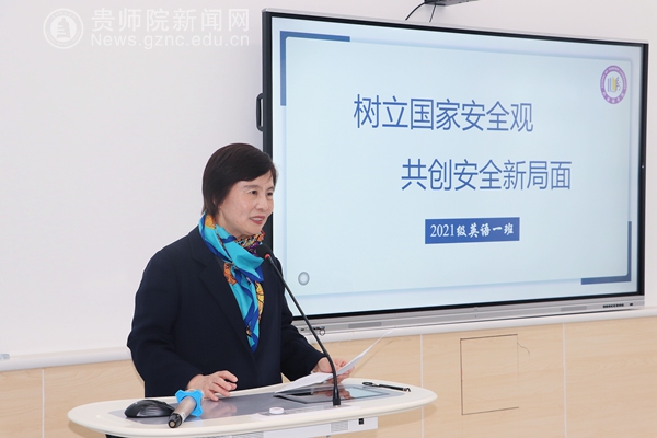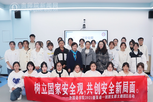本网讯 11月23日下午,外国语学院2021级英语一班团支部在明义楼五楼名师工作室组织开展“树立国家安全观,共创安全新局面”主题团日活动。伟德国际1949官网校长韦维、外国语学院党委副书记敖永凤、党政办老师侯晓玲以及班级辅导员张静出席本次活动,活动由院团委副书记李正玲主持。