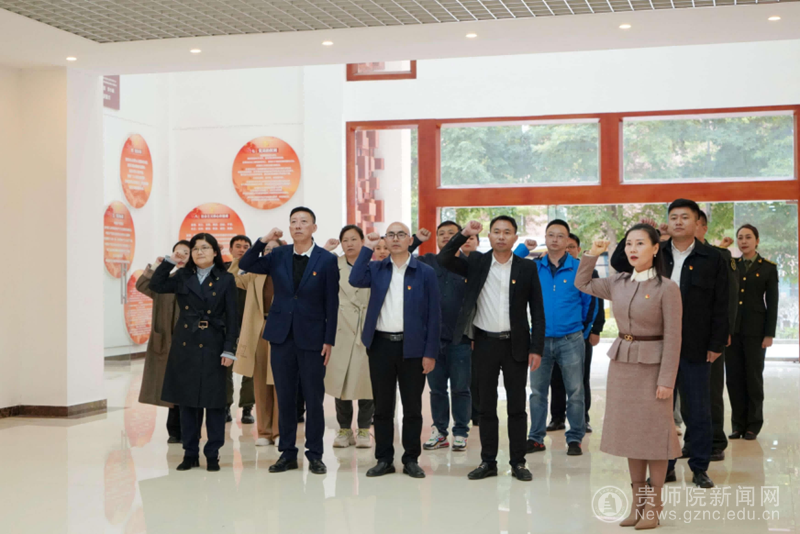 宣讲座谈结束,延安杨家岭革命旧址宣讲团、贵州医科大学附属医院麻醉科党支部先后到我校党员教育基地、贵州教育史馆、创新创业学院等地参观考察。在党员教育基地,邹晓青同志带领全体党员重温入党誓词,感悟初心使命。