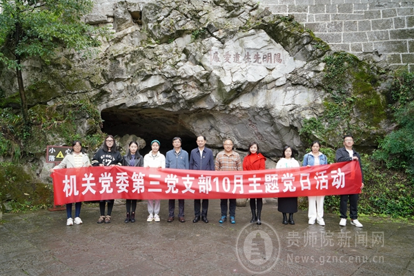 本网讯 文明生生不息,思想与时俱进。为深入领会习近平文化思想的深刻内涵,持续巩固拓展主题教育成果,不断把学习贯彻习近平新时代中国特色社会主义思想引向深入。10月13日上午,机关党委第三党支部赴修文县中国阳明文化园开展10月主题党日活动。校党委书记石培新同志以普通党员身份参加活动,机关党委第三党支部全体党员参加。活动由党支部书记薛璞同志主持。