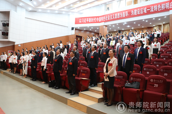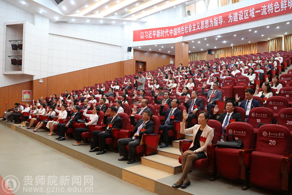 最后,石培新强调,当前学校处于发展的关键时期,挑战前所未有,机遇前所未有,只有大作为才有大发展。我们要抢抓贵州省“大扶贫、大数据、大生态”三大战略、特色教育强省、十二大特色产业、乡村振兴、新兴产业发展先机和“双一流”建设的重大发展机遇,聚焦人才培养主责主业,以发展为要务,以立德树人为根本,以申硕工作为抓手,以学科建设为龙头,以教学科研为主线,以改革创新为动力,扎根贵州大地办教育,把论文写在贵州大地上,乘势而上、顺势而为、加快发展。要善于思变、求变,敢于突破不合时宜的观念,敢于打破陈规陋习的束缚,大力破解制约发展的体制机制障碍,最大限度地让改革激发活力。要围绕“师”作文章,立足“贵”强服务,潜心钻研,苦干实干,多出成果,为贵州脱贫攻坚、生态文明建设和经济社会高质量发展贡献我校的智慧和力量。