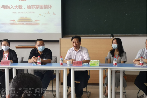 本网讯 商学院18级公共关系班于6月17日下午在明义楼428教室开展了“小我融入大我,培养家国情怀”的主题团日活动。此次活动,非常荣幸邀请到我校副校长余维祥教授亲临现场指导,并与同学们亲切交谈。我校校团委副书记罗荣、商学院党委书记薛璞、商学院党委副书记张彬、商学院团委指导老师王红都以及商学院2018级公共关系班全体同学参与此次团日活动。
