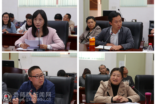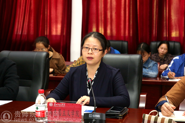 会议首先由马克思主义学院院长金凤介绍会议背景并传达学习省教育厅有关会议精神,然后由3月18日在京参加学校思想政治理论课教师座谈会教师代表:数学与大数据学院辅导员谭丽琼分享参会的经过和感想;接着马克思主义学院参会教师代表、教研室主任结合自身学习习近平总书记的讲话精神,以及所承担的思想政治理论课建设和发展的情况进行了交流发言。教师代表王天桥结合习近平总书记对思想政治理论课教师的六点要求,表示我们思想政治理论课教师要打造有大爱、有智慧、有希望的思想政治理论课课堂,努力做传递爱心、分享智慧、传播梦想的新时代思想政治理论课教师;石磊表示中华优秀传统文化研究是自己的长处,在思政课教学中积极融入中华优秀传统文化研究成果已经取得了很好的教学效果,社会主义先进文化和中华优秀传统文化是不可分割的中华优秀文化的组成部分,在今后的研究和教学中要把优秀传统文化和社会主义先进文化有机融合起来作为发展的方向和目标;张晓娟介绍了分组分专题教学的情况;曹颖分享了思想政治理论课的实践教学的重要性,希望学校给予支持,加大思政课实践教学的力度;教研室主任张玉胜从教学内容、教学方法以及教学管理上介绍了《思想道德修养与法律基础》课改革情况;王晓丹介绍了《马克思主义基本原理概论》课教学改革的情况,并表示把思想政治理论课与现代新媒体融合度不够,如何借助于新媒体技术增强思想政治理论课的实效性和亲和力是今后努力的方向;王薇表示将中国故事作为《毛泽东思想和中国特色社会主义理论体系概论》课的教学载体,让课堂更生动、更具亲和力;马业勤表示《中国近现代史纲要》课不仅是一门历史课,更是一门政治理论课,介绍了课程改革的方式以及改革的内容。参加会议的教师工作处处长谢笠就思想政治理论课教师队伍建设工作提出了部门的工作计划;宣传部部长邹晓青也结合职能部门怎样为思想政治理论课教师做好服务进行了交流发言。思想政治教育专业学生代表范太娥、杨浩楠、石羽婷也根据学习习近平总书记的重要讲话精神发表了自己的感悟和心得。